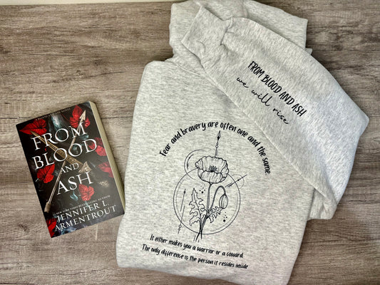 Licensed FBAA 1/4 zip sweatshirt, From blood and ash we will rise, Prince casteel, poppy Balafour, Willa book, FBAA inspired, JLA, maiden