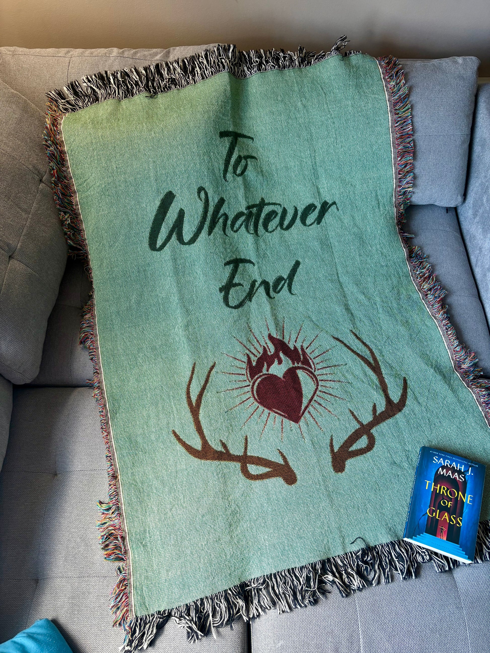 Licensed throne of glass Cozy Woven Blanket | To Whatever End | Perfect for Home Decor, Gifts, Throw Blanket, Rustic Vibes, Comfort, Sarah j Maas merch
