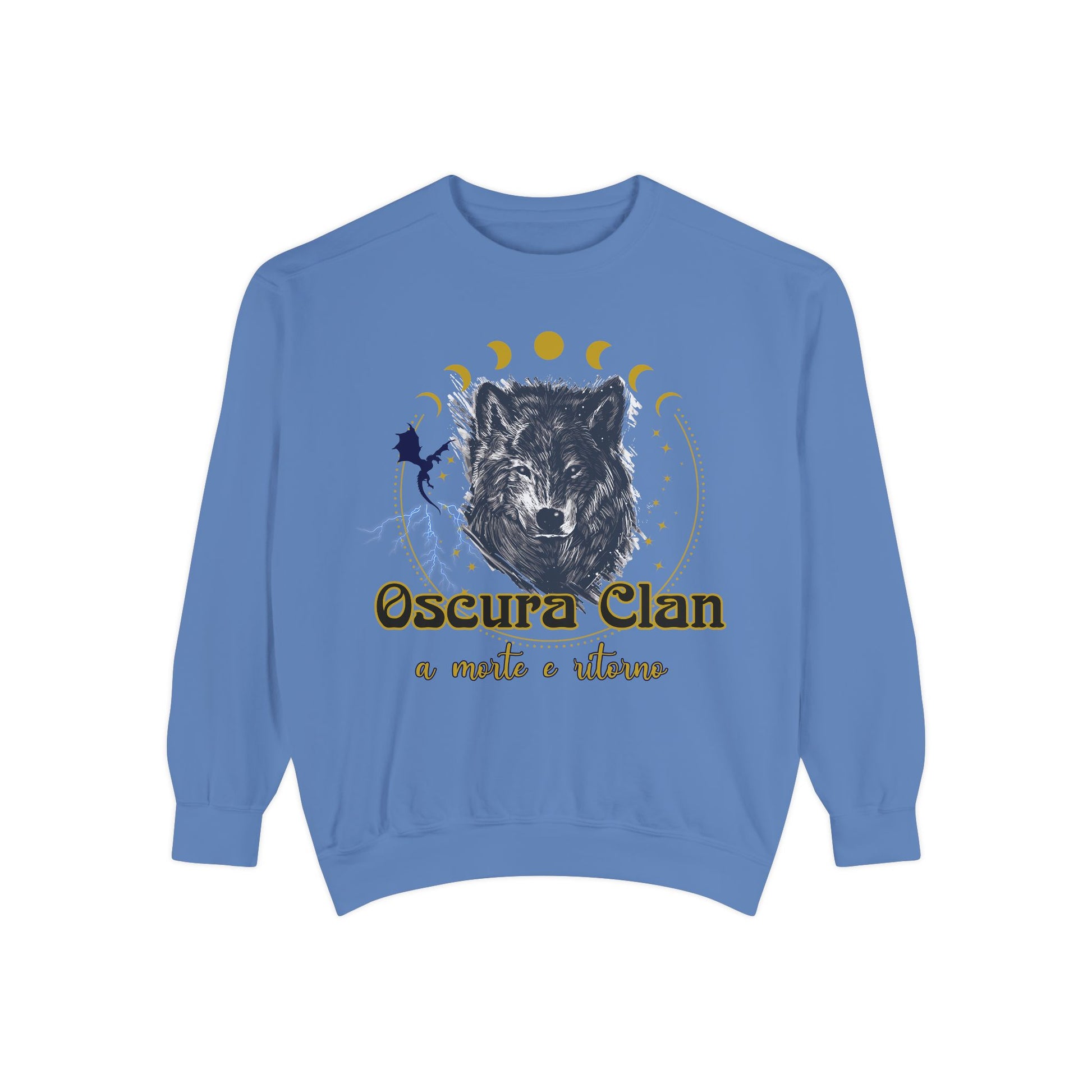 Embrace a cozy vibe with this unisex garment-dyed sweatshirt, perfect for lounging at home or stepping out in style. The unique design features a captivating wolf illustration and mystical elements that resonate with nature lovers and those who appreciate a strong symbolic connection. Crafted for comfort, this sweatshirt enhance your casual wardrobe, making it an ideal choice for simple gatherings, chilly evenings, or festival outings. Great for those who appreciate artisan-style clothing, this piece is perfect for gifting during the winter holidays, gatherings, or as a thoughtful gesture for birthdays or other celebrations.